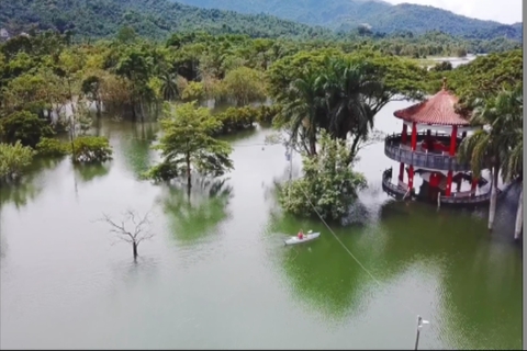 【新唐人亞太台 2019 年 09 月 14 日訊】以「曾水煙波」被列為新南瀛十勝景觀之一的曾文水庫,由於8月連續大雨,目前曾文水庫逼近滿水位;嘉義縣大埔鄉湖濱公園六角亭附近沒入水中,出現「水漾森林」美景,吸引不少攝影迷前來拍攝。