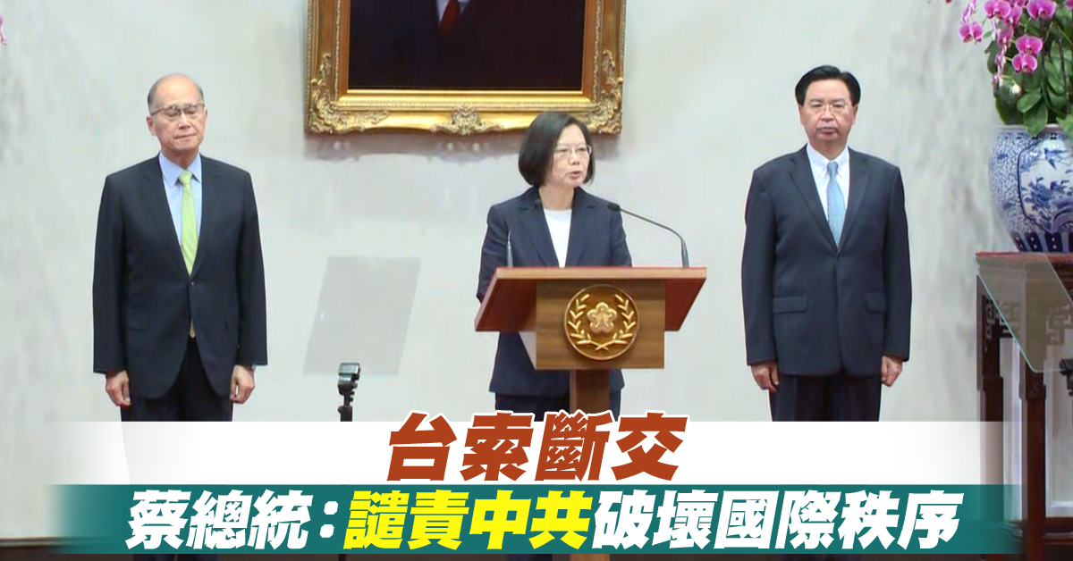 台索斷交 蔡總統:譴責中共破壞國際秩序