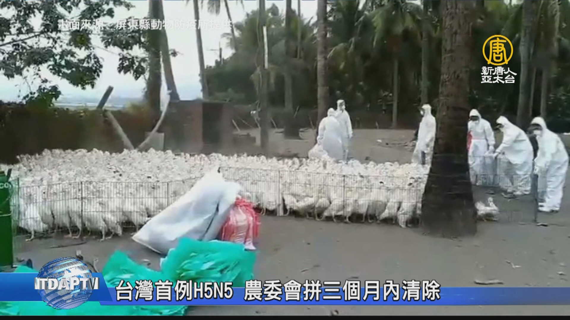【新唐人亞太台 2019 年 09 月 16 日訊】歡迎回來,農委會今天證實,高雄市旗山區一處養鴨場,12日撲殺3千多隻病鴨,經家畜衛生試驗所檢測分析,確診為感染H5N5高病原性禽流感病毒,也是台灣首檢出的個案。