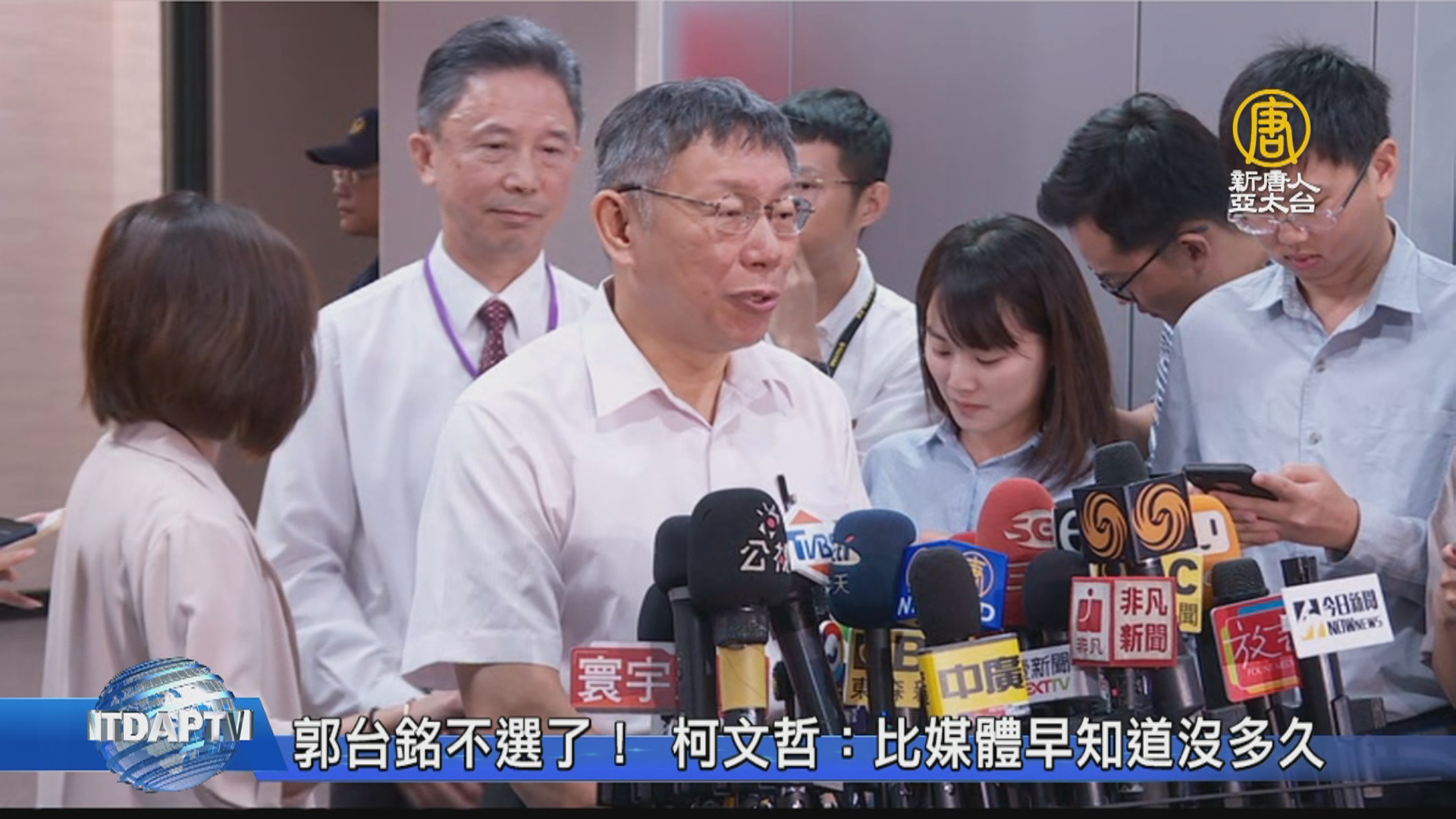 【新唐人亞太台 2019 年 09 月 17 日訊】郭台銘宣布不參與2020連署競選總統。周二早上,台北市長柯文哲受訪時,針對選舉的規劃是否因此被打亂,柯文哲是表示,他本來就打算扮演輔選角色。