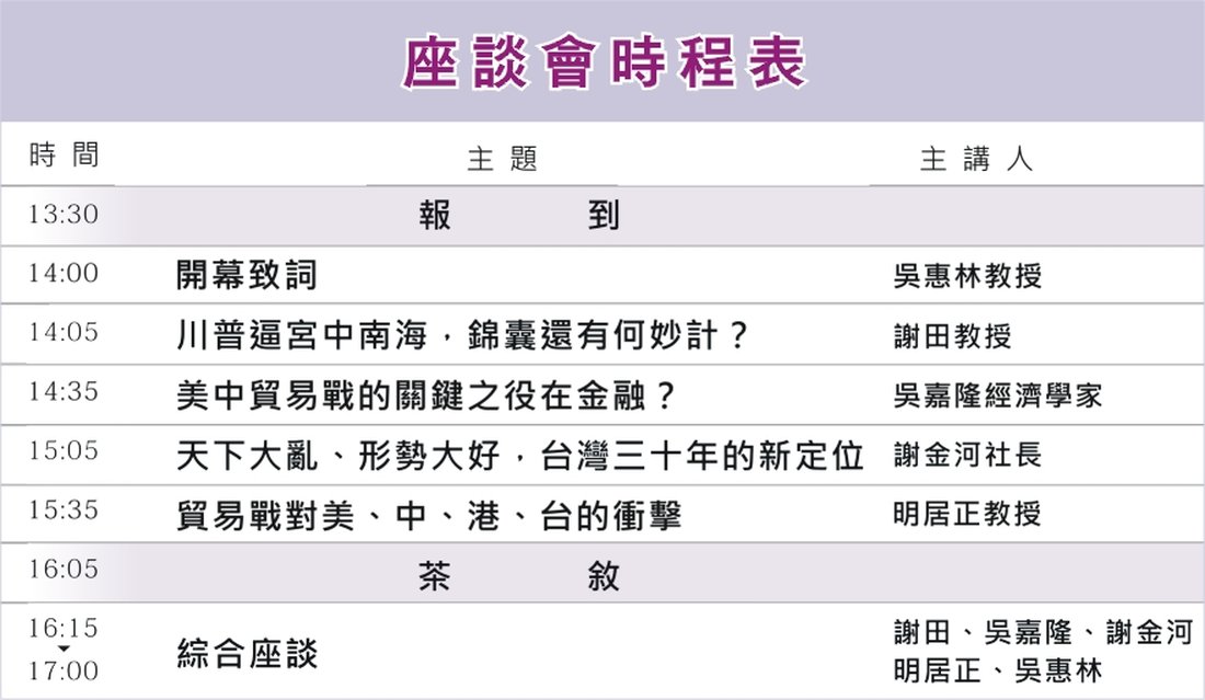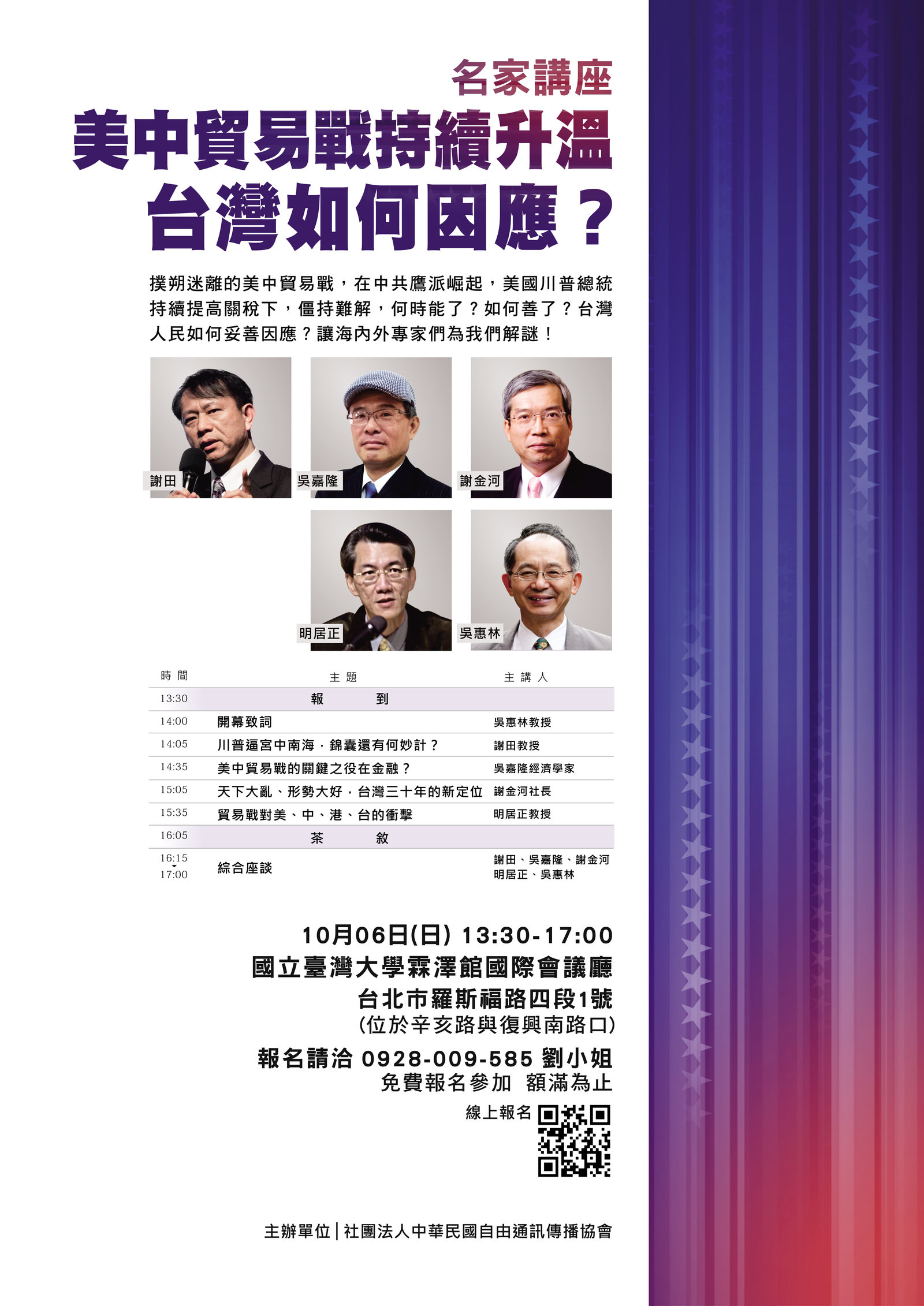 【政經座談錄影】名家講座:美中貿易戰持續升溫,台灣如何因應 ?