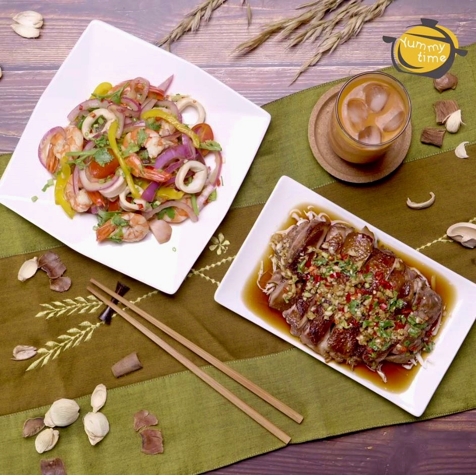 超簡單的「涼拌海鮮」,用煎的「椒麻雞」,還有香濃道地的「泰式奶茶」