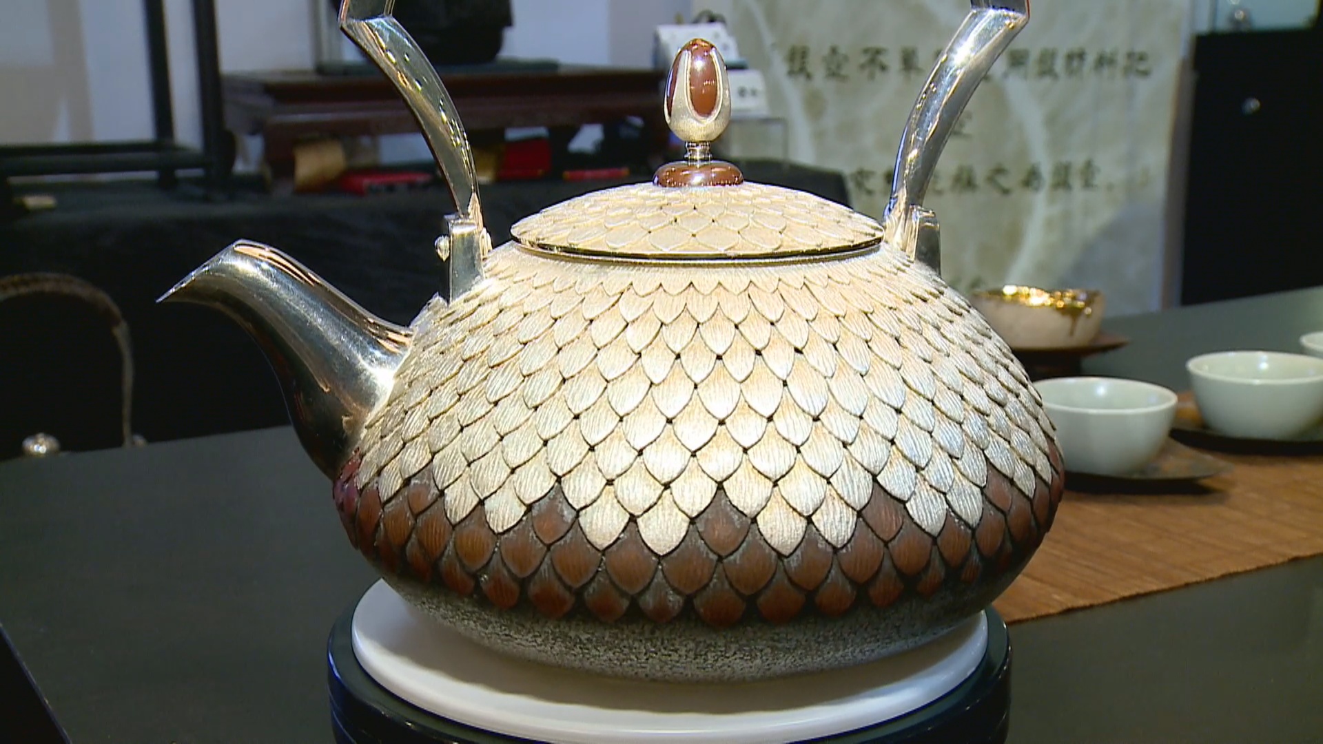【新唐人亞太台 2019 年 09 月 21 日訊】日本百年工藝「銀壺」,受邀參加2019世界搏茶會展出;把一片純銀用槌子敲打成「手工銀壺」,除了具有煮水的實用功能,壺上精美華貴的雕刻紋樣,更是讓人愛不釋手。