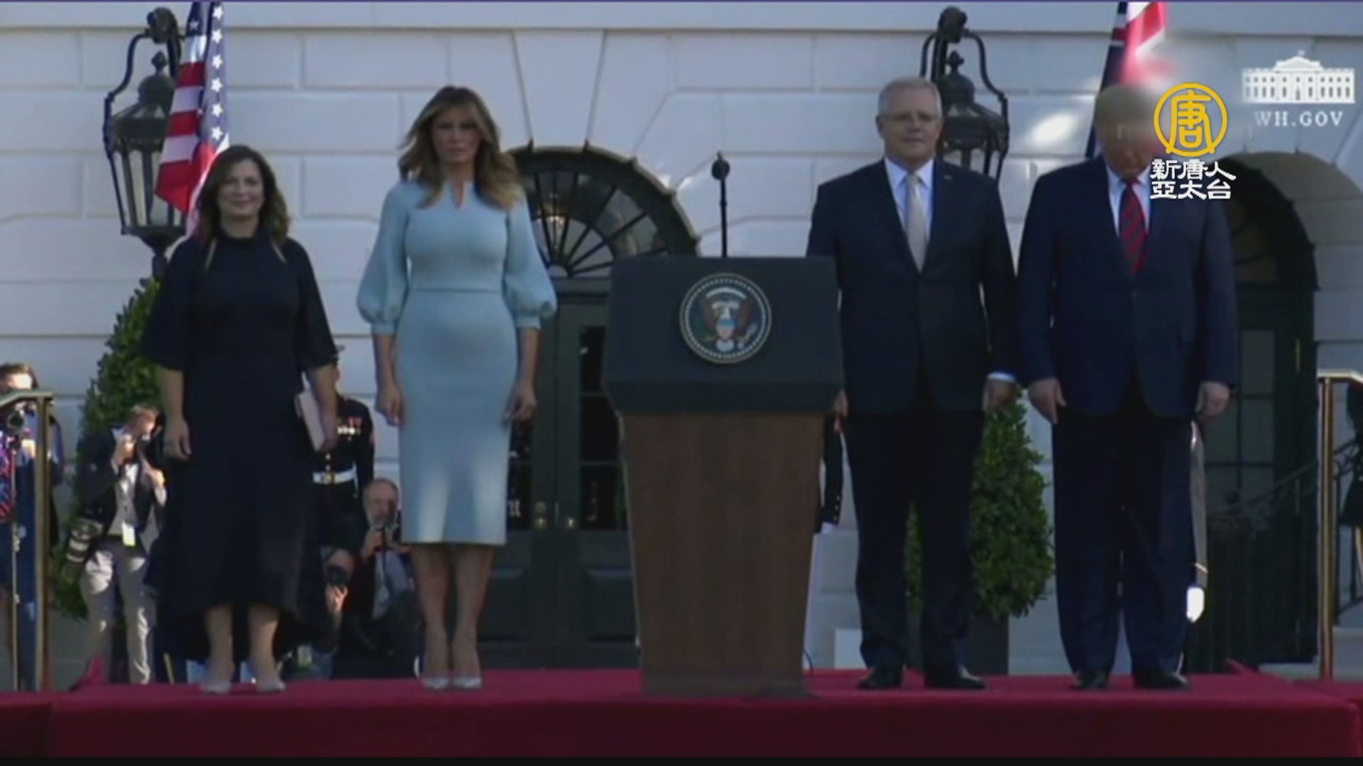 美國總統川普及第一夫人梅蘭妮亞週五在白宮,迎接澳大利亞總理莫里森及夫人的到來。美國副總統彭斯、財政部長梅努欽、國防部長艾斯培等眾多內閣官員出席歡迎儀式。