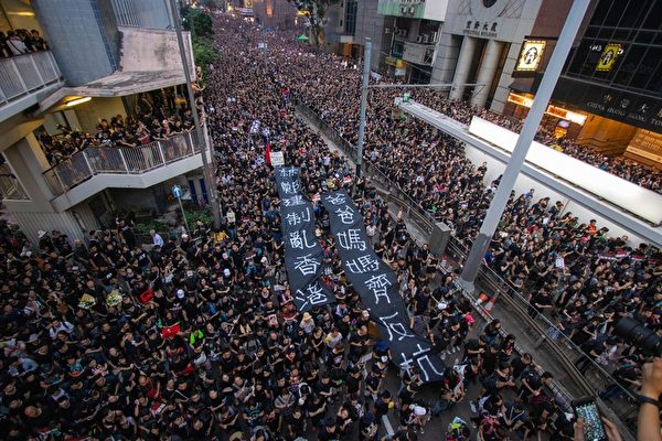 6月16日,近200萬市民再次上街反惡法,要求特首林鄭月娥下台,遊行人數創香港史上最多紀錄。(蔡雯文/大紀元)