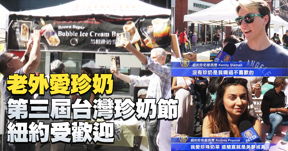 2019-09-28 20:59:03接下來帶您來到美國紐約,第三屆「Hello Taiwan紐約珍珠奶茶節」,日前在曼哈頓第八大道登場,推廣台灣珍珠奶茶和小吃,不少西方民眾都讚不絕口。