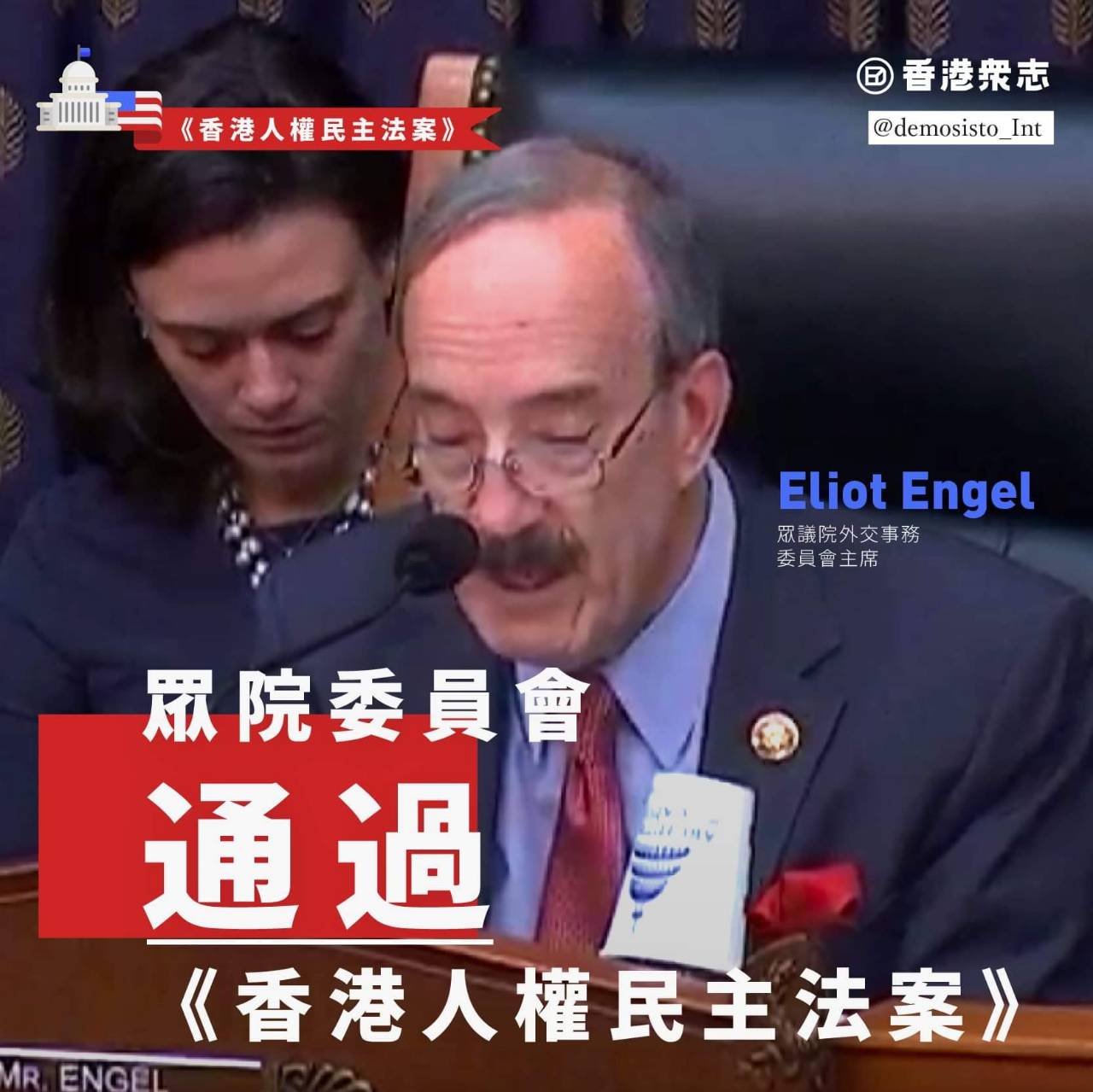 美眾院外委員 無異議通過《香港人權民主法案》 (圖/香港眾志臉書)