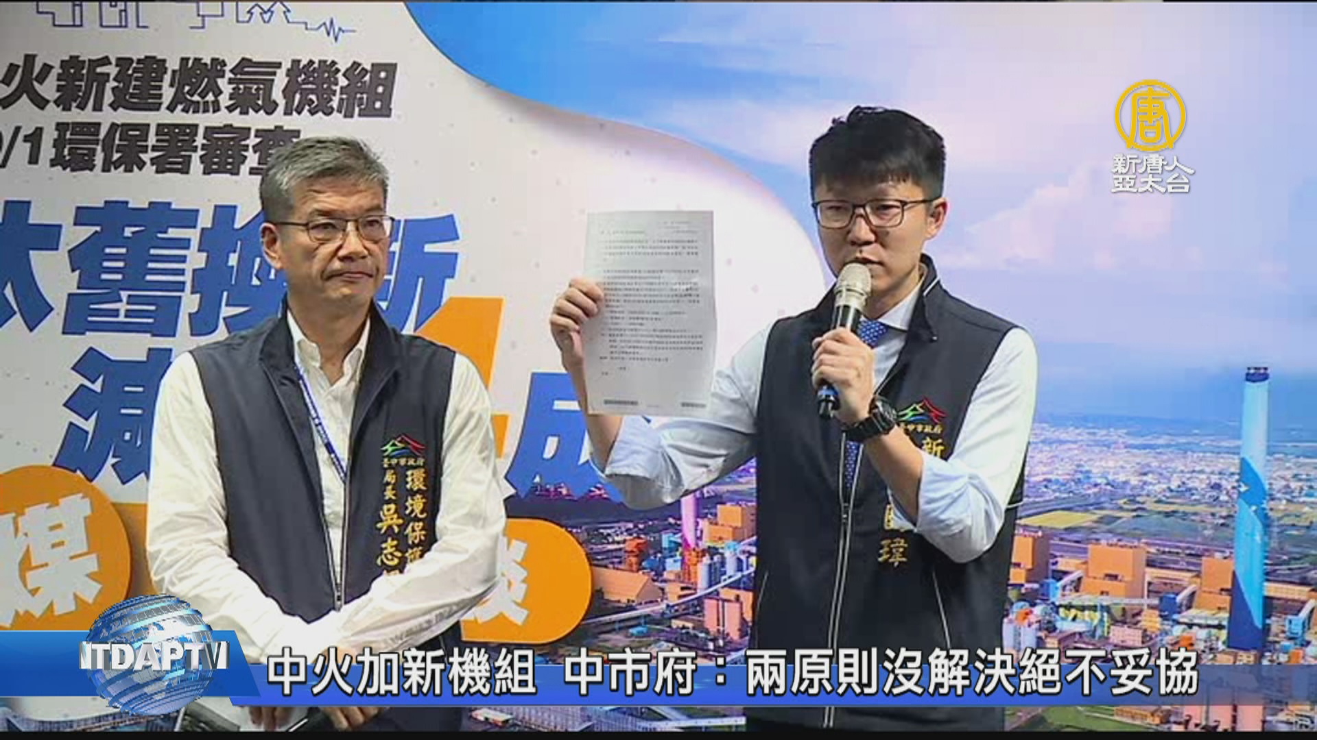 【新唐人亞太台 2019 年 09 月 27 日訊】台電公司規劃在台中火力發電廠新增2部燃煤機組,台中市政府今天(27日)召開記者會表達強烈抗議,強力要求減煤4成,以及汰舊換新,兩原則沒解決,絕不妥協。