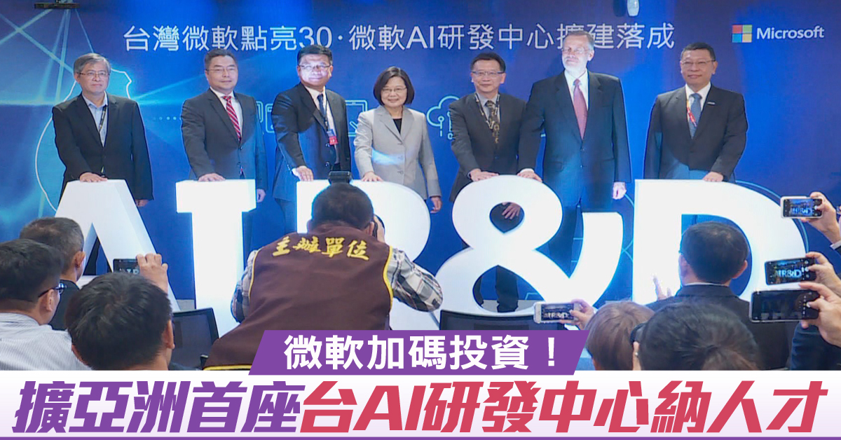 微軟2018年在台灣成立亞洲第一個AI研發中心,短短一年多的時間,規模擴增到兩層樓,微軟更選在台30週年之際,宣告加碼投資。