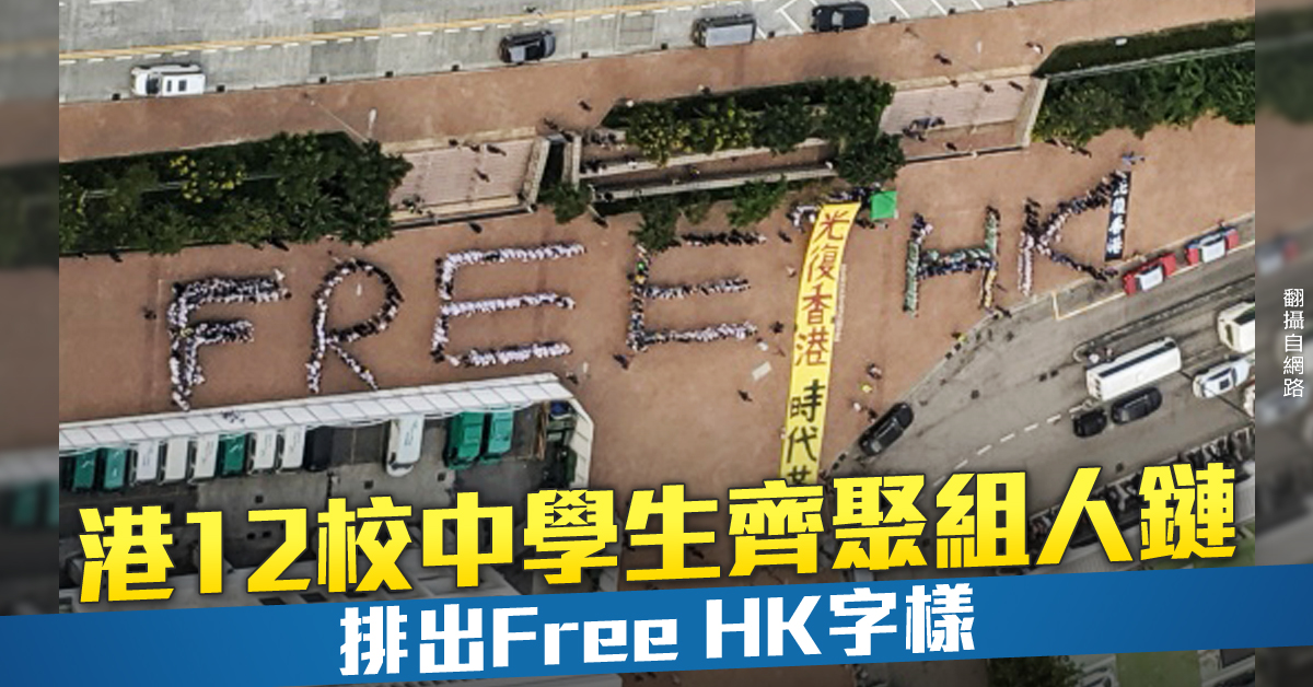 港12校中學生齊聚組人鏈 排出Free HK字樣