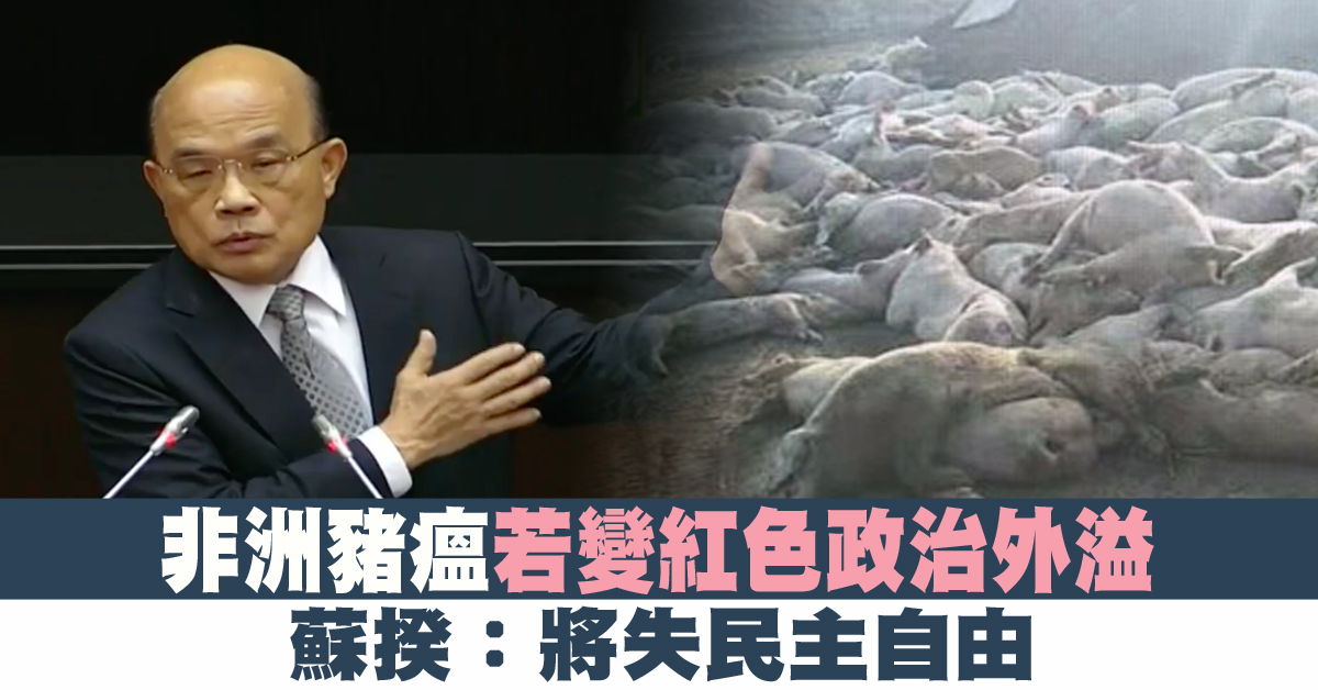 非洲豬瘟若變紅色政治外溢 蘇揆:將失民主自由