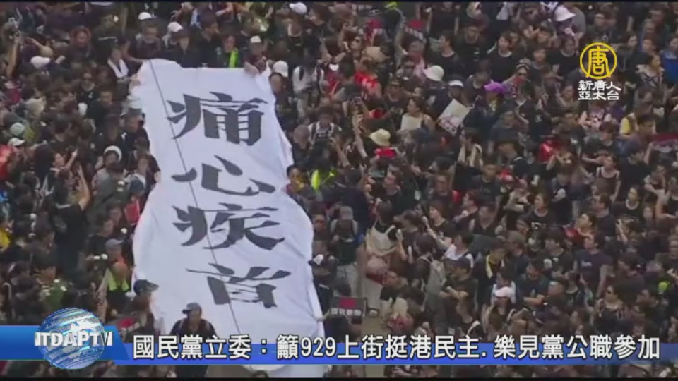 【新唐人亞太台 2019 年 09 月 27 日訊】港台上百個公民團體,周日929全球反極權大遊行。跨黨派政要陸續表達支持,民進黨主席與黨公職也將走入遊行人群。國民黨立委許毓仁週四(26日)受訪表示,呼籲國民黨方面自動自發參加遊行,捍衛民主自由不分黨派,樂見黨公職參加。