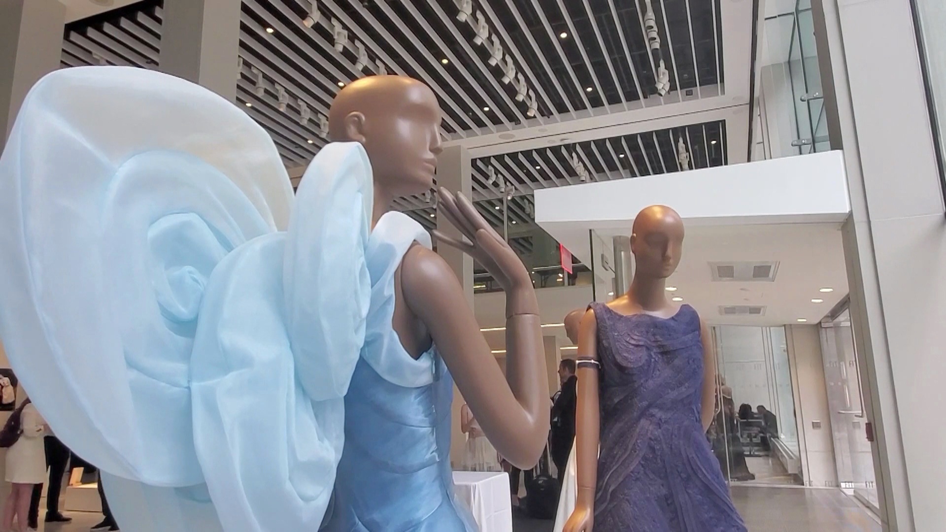 FIT學生設計者 Baoqing Yu:「這個(靈感)是來源一個海底的世界,然後這一套主要是海底的海浪的感覺,所以很多元素都是來自於一些波浪的形狀,還有面料也是用了一層層的感覺,體現出來。」