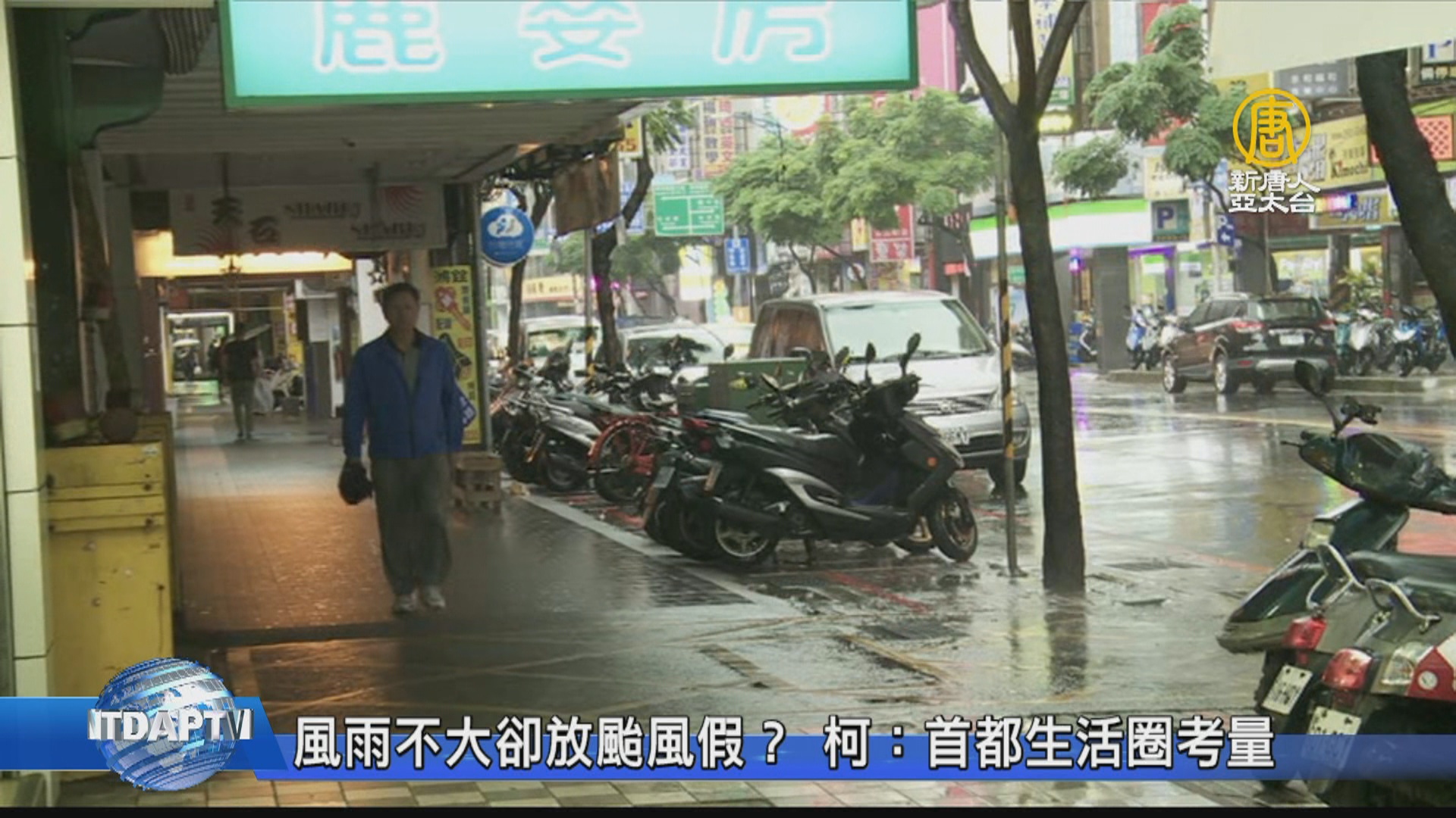【新唐人亞太台 2019 年 09 月 30 日訊】「米塔」颱風侵襲,下午過後北部地區,風雨漸強,但上午北市風雨不大卻放起颱風假,台北市長柯文哲表示,是基於首都生活圈考量,新北市長侯友宜多次致電溝通,才共同決定放颱風假。