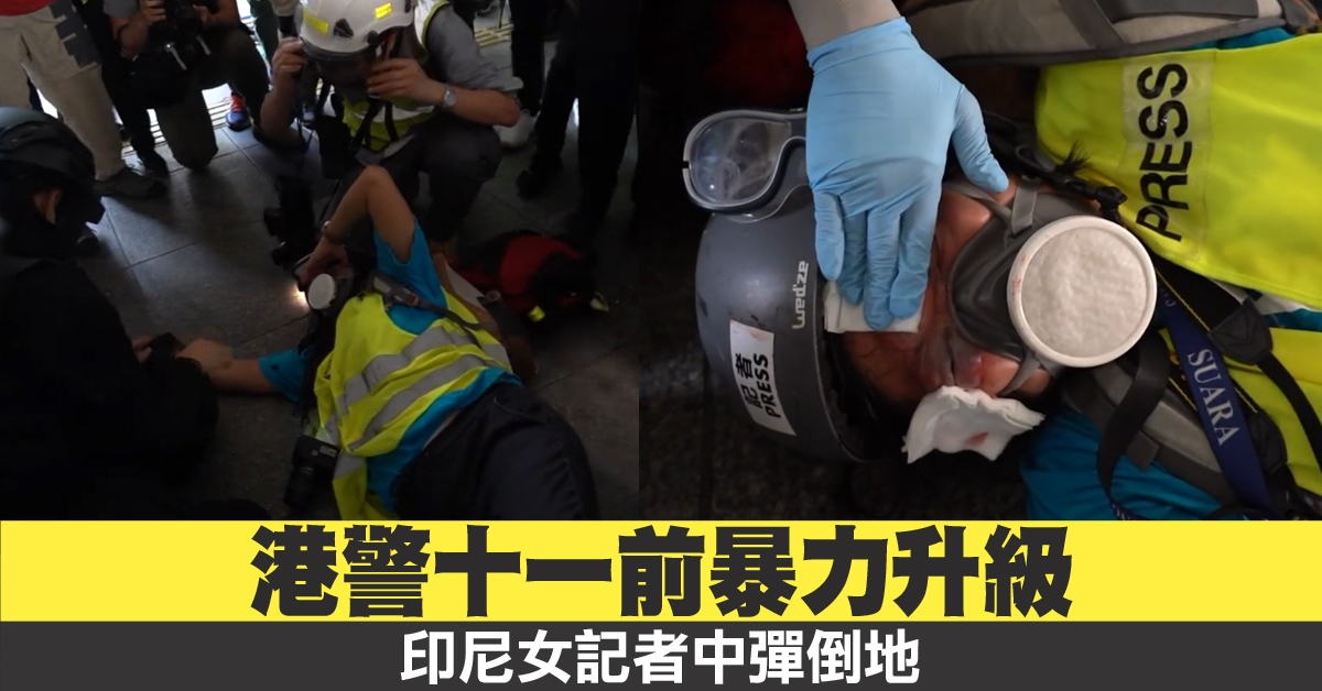 港警十一前暴力升級 印尼女記者中彈倒地