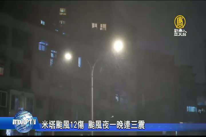 【新唐人亞太台 2019 年 10 月 01 日訊】早安新唐人先來關心米塔颱風災情,昨天北台灣從下半天開始就進入狂風大雨,根據中央災害應變中心,今早六點半發布的消息,最多累計有4萬戶停電,昨晚10點前,修復了3萬5千多戶;有12人受傷,123班客貨機受影響:預計最快今天上午台灣就可以脫離暴風圈。另外,颱風夜高雄、花蓮更是一夜連3震,最大來到芮氏規模4.4,高雄市旗山有4級震度。