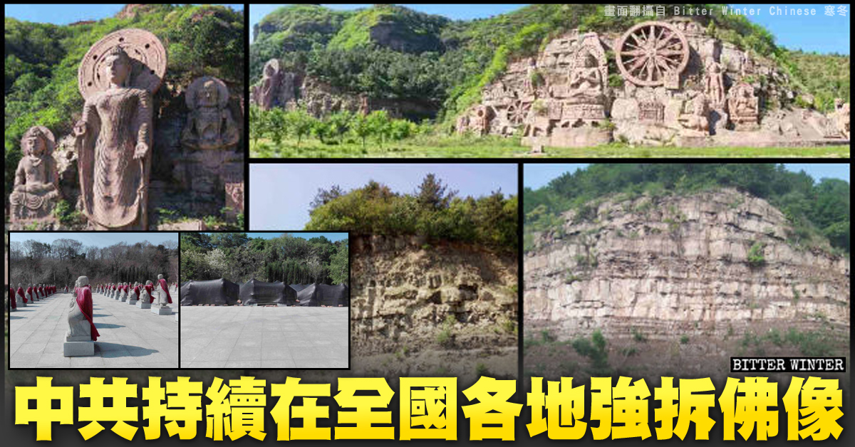 【新唐人亞太台 2019 年 10 月 01 日訊】中共持續在全國各地拆除佛教造像,今年5月,河北「世界佛教之光」58尊摩崖石雕慘遭摧毀。同時,福建省有300尊羅漢像,遼寧有500尊羅漢像也被勒令移除,內蒙古呼和浩特市的一尊三面觀音像也被強拆。