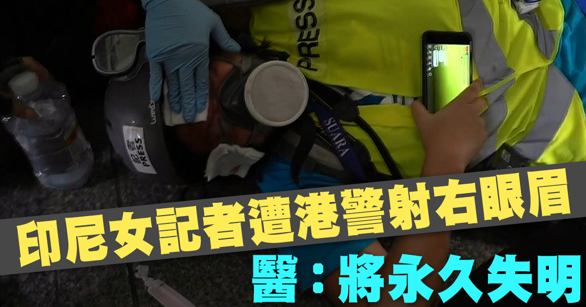 印尼女記者遭港警射右眼眉 醫:將永久失明