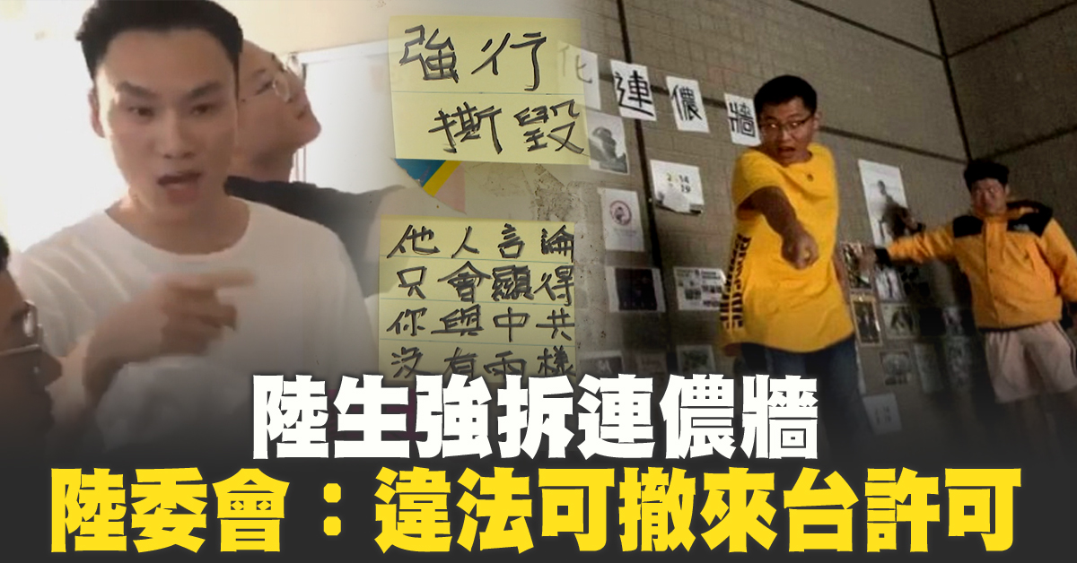陸生強拆連儂牆 陸委會:違法可撤來台許可