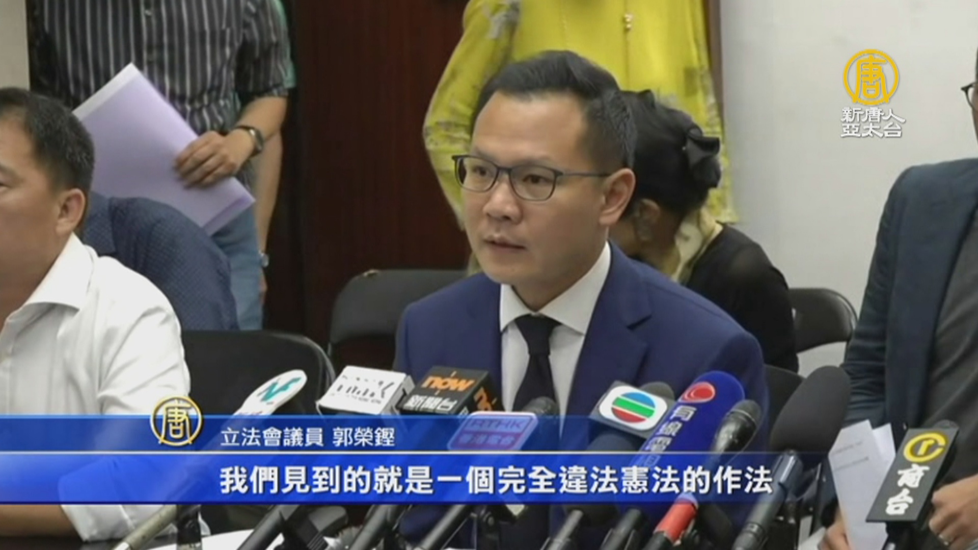 立法會議員 郭榮鏗:「今日我們看到這個規例,這個肯定是香港邁向極權的一大步,我們見到的就是一個完全違法憲法的作法,她明的說它是一個規例,實在它是一個主題法例,一個主題法例,它不是一個規例,一個主體法例,它用一個訂立的方法,完全繞過立法會。」