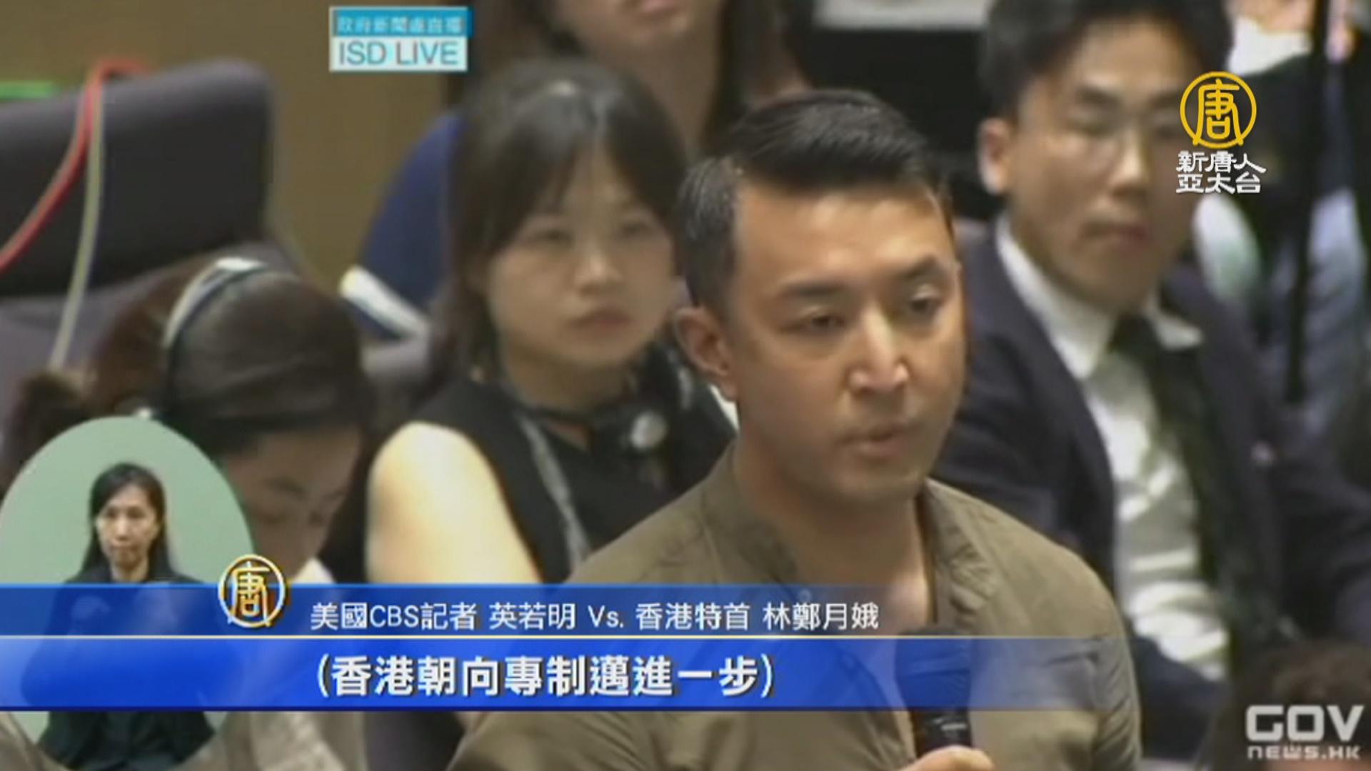 美國CBS記者 英若明 Vs. 香港特首 林鄭月娥:「(全世界都在關注,(港府)這一動作能夠被視為,香港朝向專制邁進一步,就像在中國大陸一樣,妳的反應是?)感知也許不是現實。我看不到,你如何能夠將(港府的措施)與更接近專制的一步聯繫起來。這是應對極其困難的局面的負責任的行為,我希望全世界對此有所同情。(妳10月1號在北京,而不是在香港。妳這麼做有獲得北京同意嗎?我想許多人都想知道。)就像所有其他事情一樣,與這次抗爭有關的所有其他事情,我一次又一次地說,按照一國兩制,這是我們在香港內處理的事情。因此,沒有中央人民政府批准這樣的事情。」