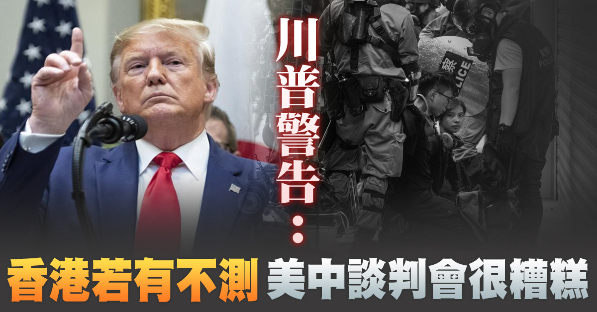 美國總統 川普:「香港非常重要,她是世界樞紐,不只對中國來說,對全球也是,那邊有很棒的人民。他們正在揮舉美國國旗。他們甚至標有『讓中國再次偉大』,『讓香港再次偉大』的標誌,我都看到了,他們有巨大的標語,對我們的國家有著巨大的精神。很多美國國旗。很多川普的標語。我希望能看到達成人道的協議,並且我認為習主席有能力做到這一點。」「如果發生任何『不好的事情』,我認為這對(貿易)談判將是一件非常糟糕的事情。 我認為從政治上講,這可能非常艱難,可能對我們,對其他人,甚至對他(習近平)來說都是如此。」