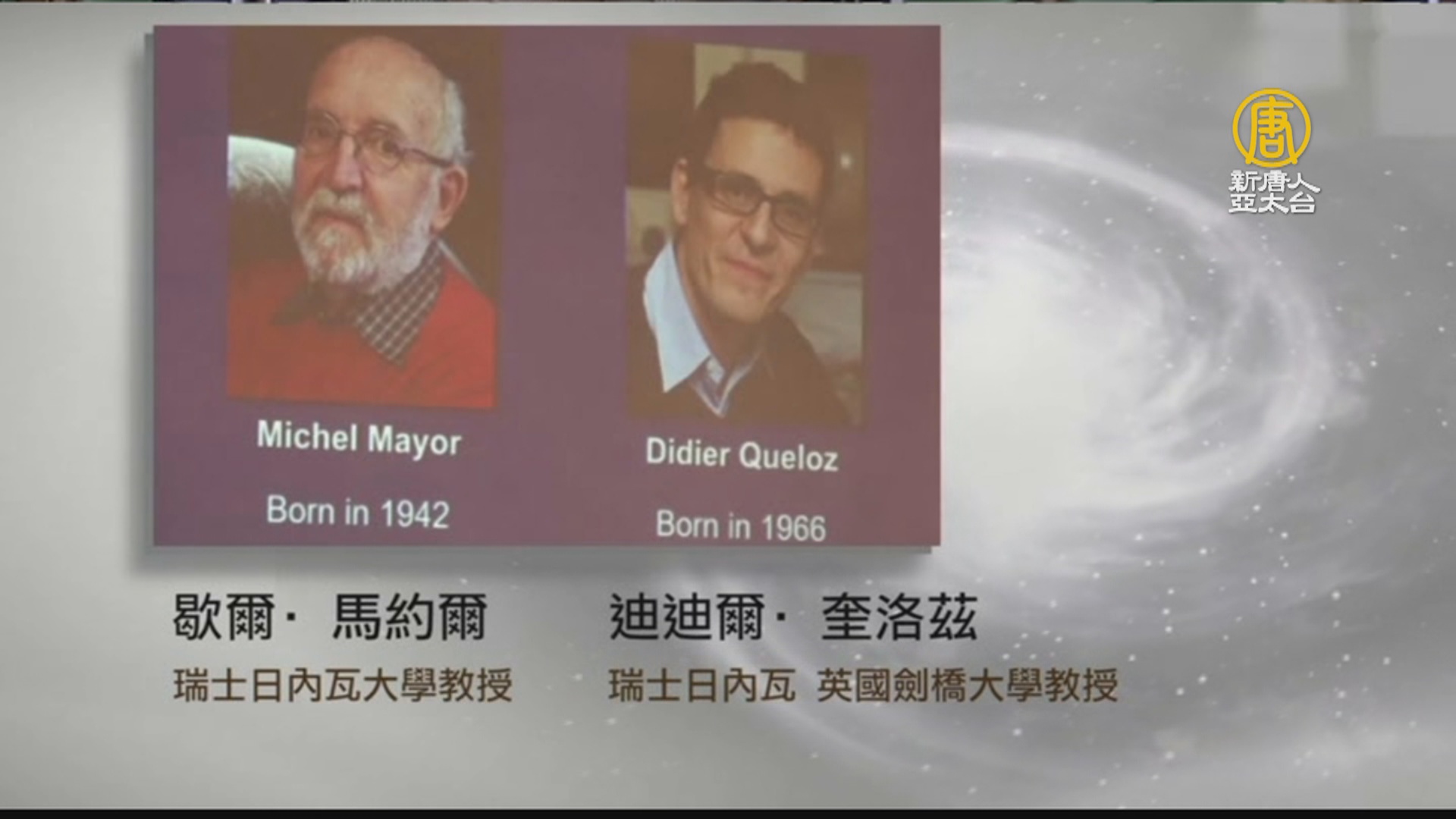 歇爾‧馬約爾是瑞士日內瓦大學教授。迪迪爾‧奎洛茲是瑞士日內瓦大學和英國劍橋大學教授。1995年,他們首次發現了太陽系外行星,在銀河系中繞太陽系恆星運行。隨著更多系外行星的發現,人類有可能探測到系外生命。