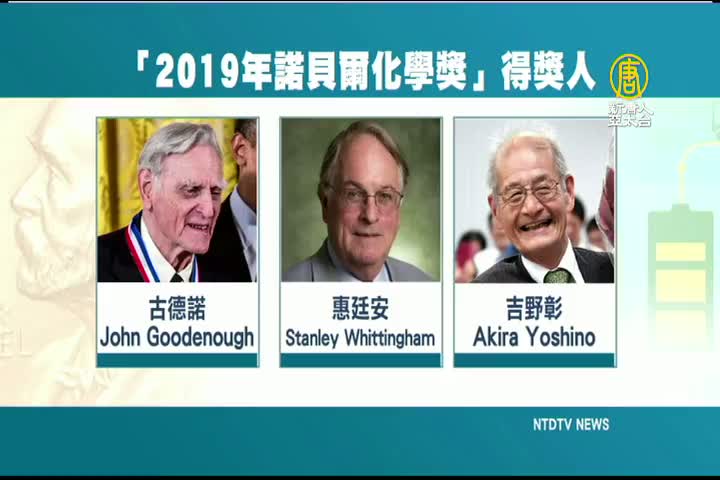 【新唐人亞太台 2019 年 10 月 09 日訊】「2019年諾貝爾化學獎」今天公布,由美國、英國、日本的3位學者共同獲得,表彰他們對「鋰離子電池」的發展貢獻。瑞典皇家科學院表示:「這種輕量、可充電,且強大的電池,不但可以應用於行動電話、筆電等輕薄物品中,也可儲存太陽能、風力發電的大量能量,讓無化石燃料的社會變得可能。」另外,去年因性醜聞缺席的「諾貝爾文學獎」項,也將在明天,一同公布 2018、2019兩年的得主。