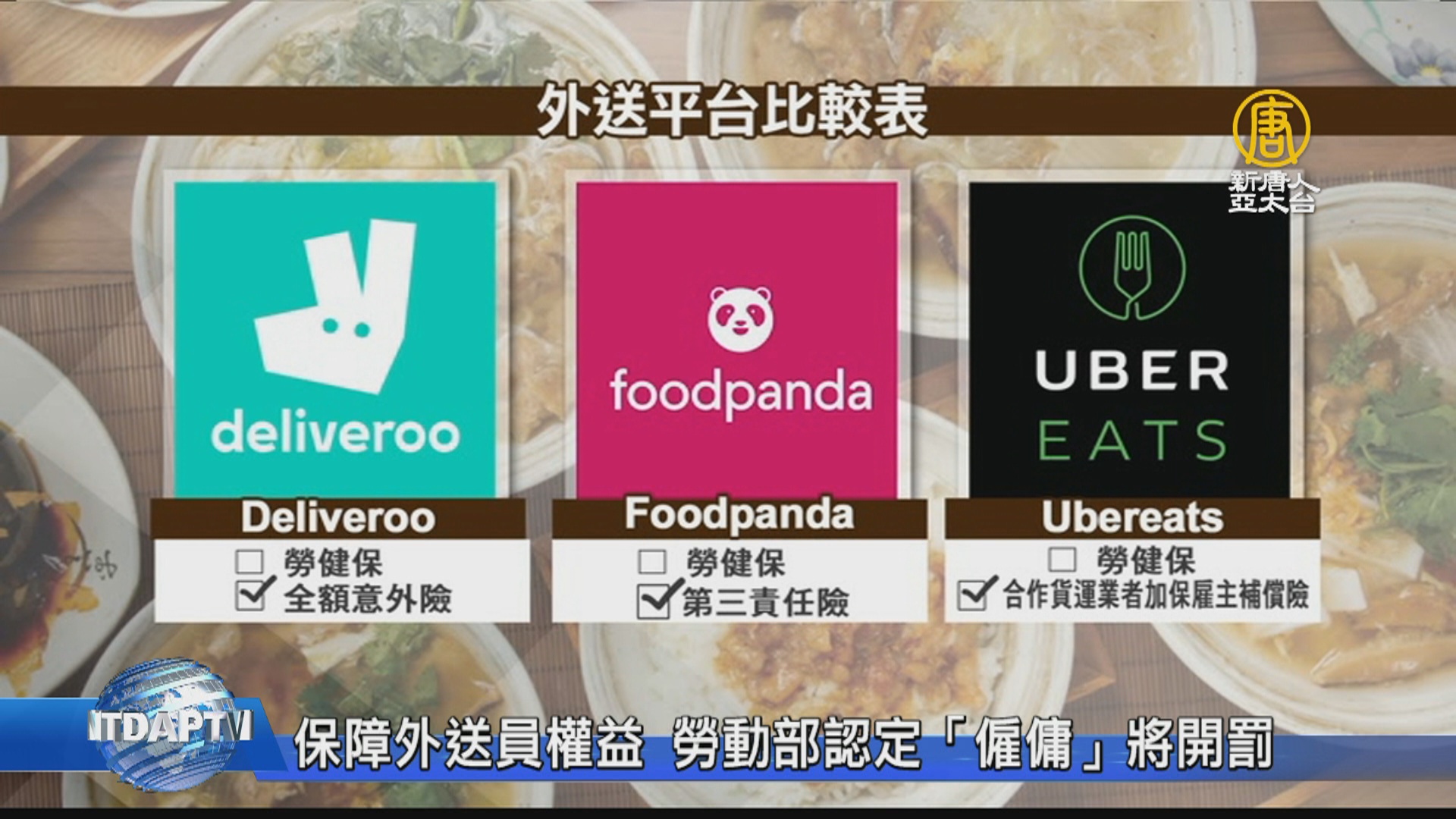 【新唐人亞太台 2019 年 10 月 14 日訊】國慶連假期間,發生3天內2名外送員因車禍身亡事件,由於外送員以單計價,送越多賺越多,但也因此讓不少外送員拼命搶快衝業績,只是發生意外後,才發現外送平台和外送員是承攬關係,根本沒有勞健保!勞動部晚間召開記者會,火速認定外送員與平台業者確實為僱傭關係,應為外送員加保勞健保、並提供職災給付。將會依法對業者開罰。