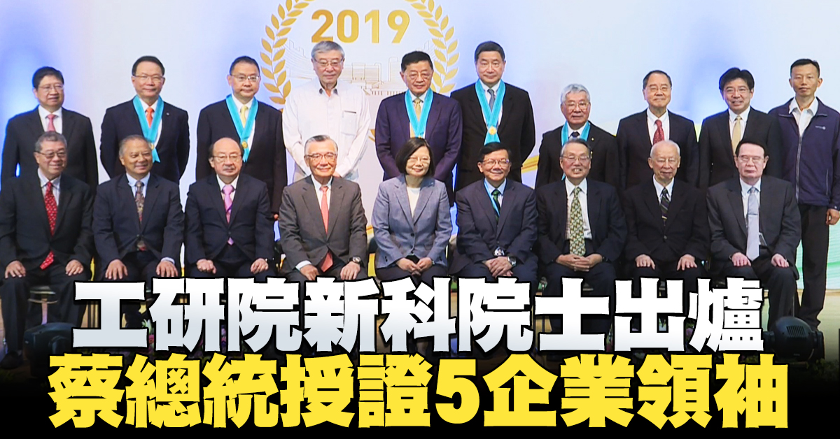 【新唐人亞太台 2019 年 10 月 15 日訊】工研院新科院士今天(15日)出爐,總統蔡英文出席典禮頒授院士證章及證書,今年由華邦電子董事長焦佑鈞、亞力電機集團總裁楊振通、台塑董事長林健男、美國AbGenomics新藥公司董事長楊育民、台泥總執行長張安平等5人當選。