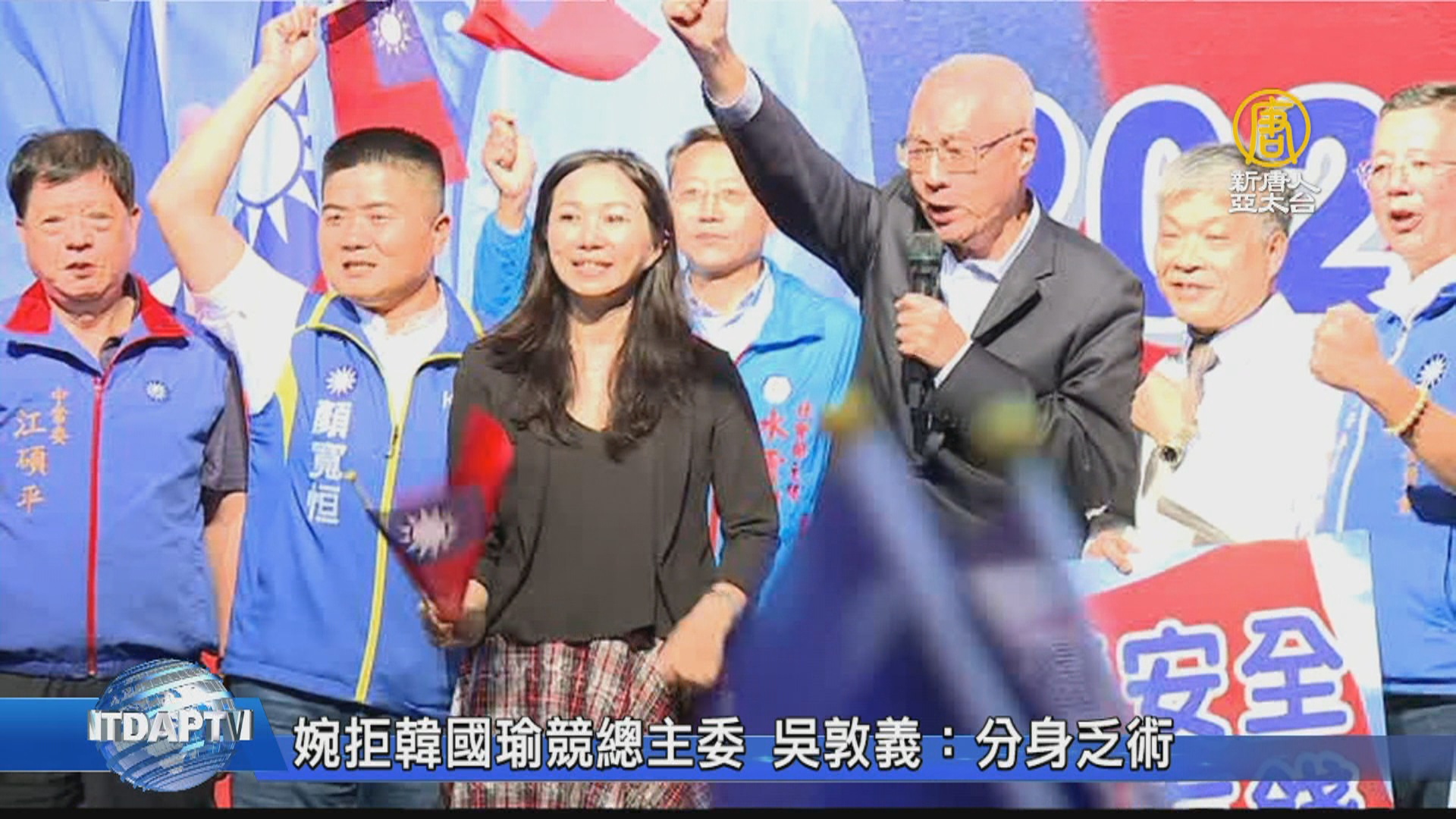 【新唐人亞太台 2019 年 10 月 15 日訊】高雄市長韓國瑜確定請假拚選戰,不過下個月全國競選總部就要成立了,沒想到關鍵時刻,國民黨主席吳敦義今天(15日)卻強調不會接競選總部主委,被外界解讀是有意切割,對此,吳敦義解釋,他要兼顧總統、立委輔選,若再擔任主委恐將分身乏術。