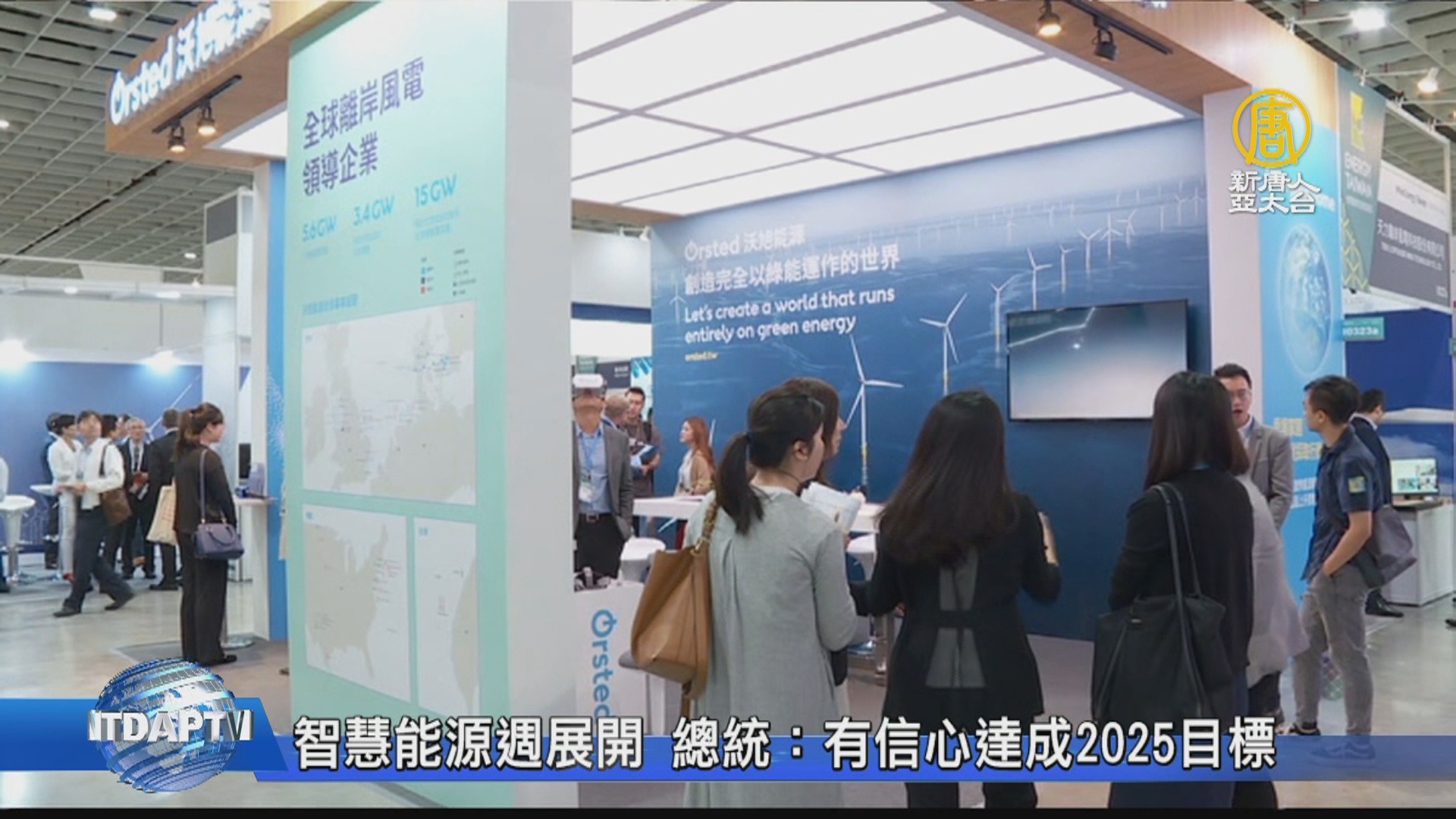 【新唐人亞太台 2019 年 10 月 16 日訊】再來看到,台灣的年度能源大事,從16號開始,台灣國際智慧能源週,一連三天在南港展覽館登場,總統蔡英文在場表示,過去3年多的能源轉型開始看到成果,而這些具體進度,也讓政府更有信心,能在2025年達到綠能占比20%的目標。