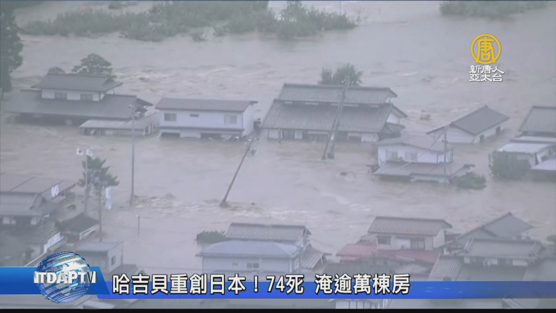 今年第19號颱風「哈吉貝」重創日本,據日媒報導,至今總計造成74人死亡、12人失蹤、224人受傷,超過1萬3000棟房屋淹水,1000棟以上房屋全毀或部分損毀,52條河川共73處潰堤。