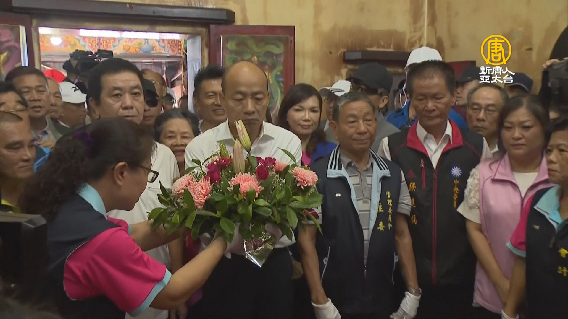 【新唐人亞太台 2019 年 10 月 16 日訊】歡迎回來。國民黨總統參選人韓國瑜請假後,全台傾聽之旅第一天,就從總統蔡英文的故鄉屏東出發,第一站到恆春鵝鑾鼻的保安宮參拜,韓國瑜提早約半小時到現場,強調從台灣最南端出發,是走庶民路線,還要總統蔡英文比照他請假參選的模式,來一場君子之爭。