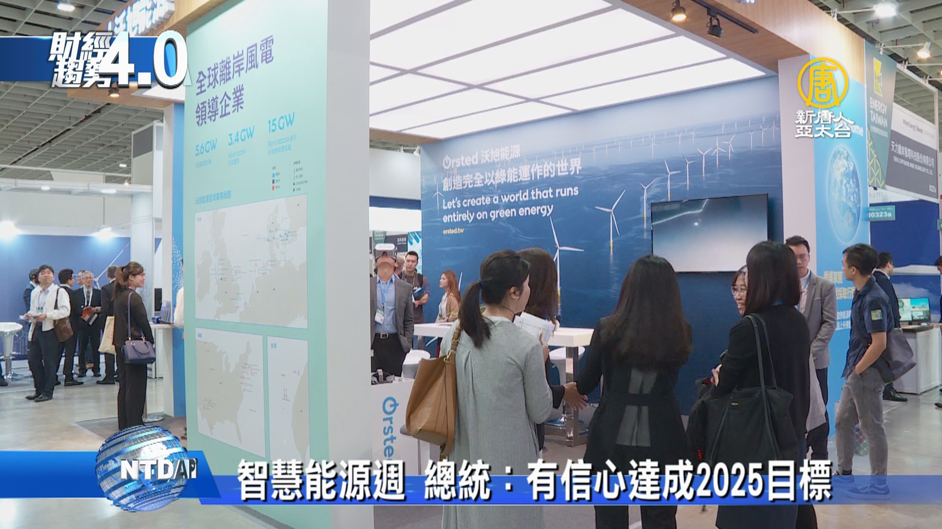 【新唐人亞太台 2019 年 10 月 19 日訊】再來看到,台灣的年度能源大事,台灣國際智慧能源週,一樣也是在本週,一連三天在台北南港展覽館登場,總統蔡英文出席表示,過去3年多的能源轉型,開始看到成果,而這些具體進度,也讓政府更有信心,能在2025年達到綠能占比20%的目標。