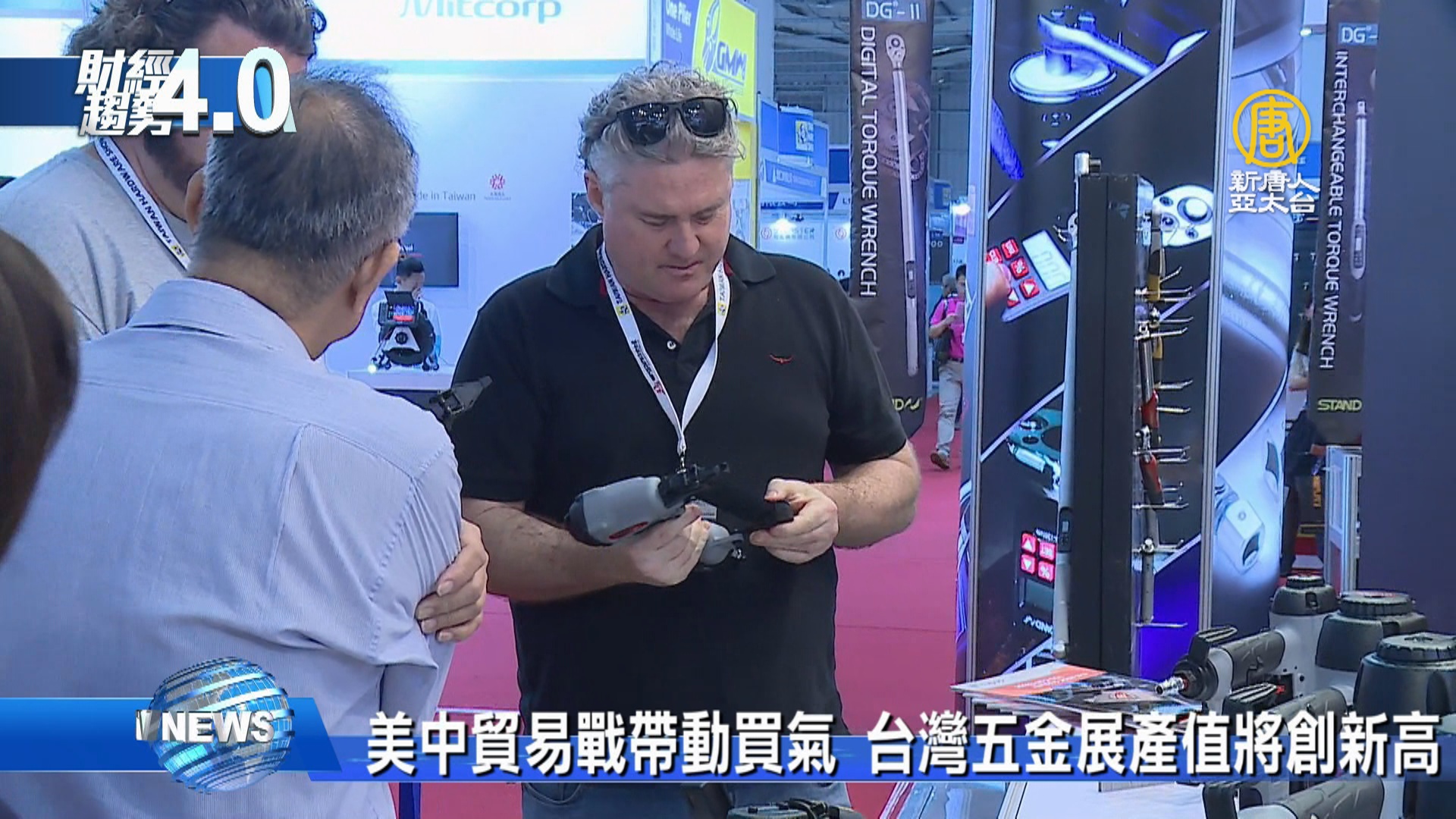 【新唐人亞太台 2019 年 10 月 19 日訊】首先看到,為期三天的2019年台灣五金展,本週在台中國際展覽館開幕,今年預計有430家業者參展,手工具公會理事長表示,美中貿易戰改變全球五金供應鏈,預估2019年產值 將創新高。