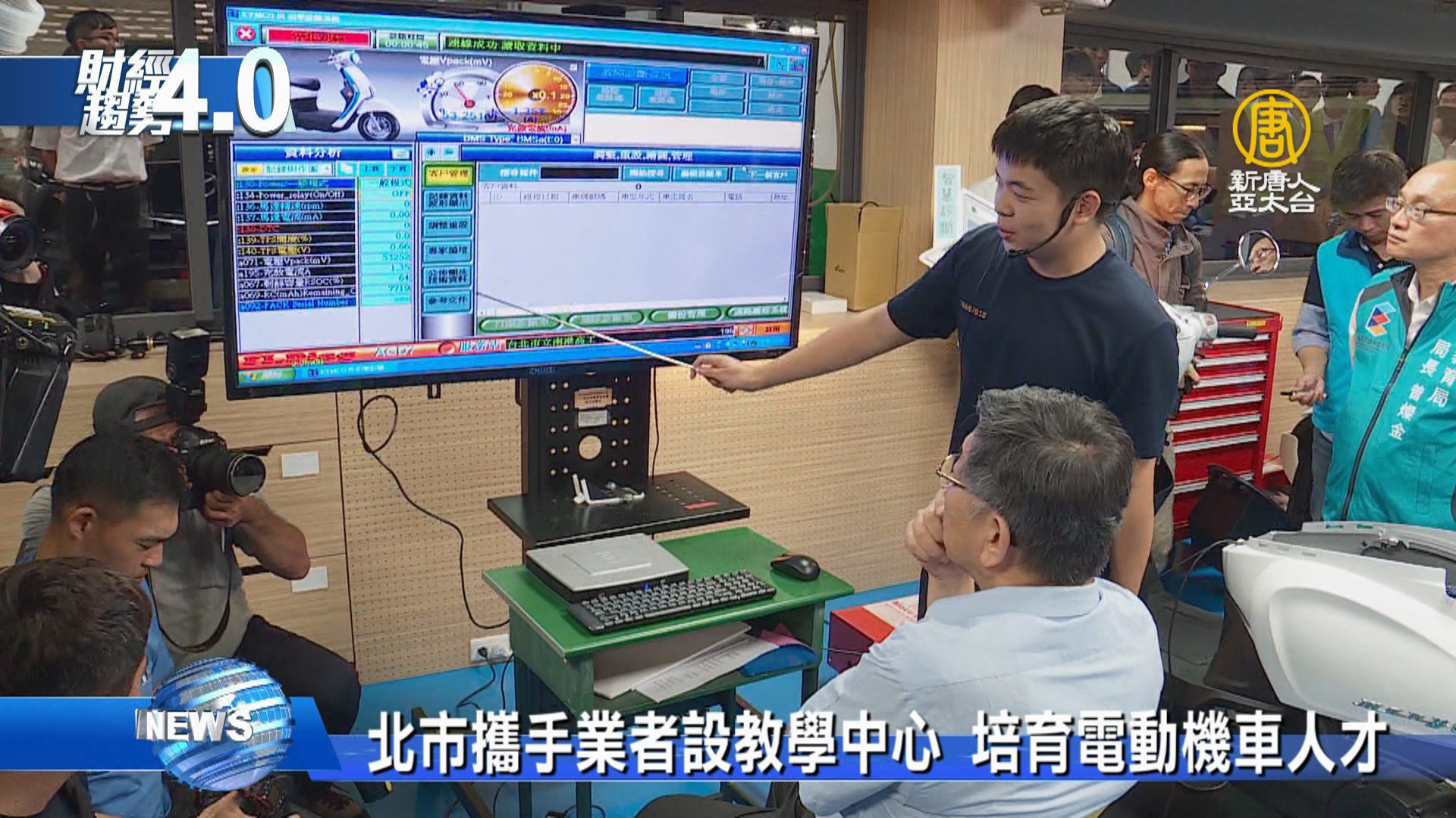 【新唐人亞太台 2019 年 10 月 19 日訊】台灣電動機車銷量節節攀升,年銷售即將超過10萬台,台灣電動機車不再是初期發展階段,而是蓬勃發展的產業。臺北市打造全國第一所,以高職教學為主的電動車技術教學中心,台灣機車大廠也宣布,挹注600萬元教學設備,協助培育電動機車人才。