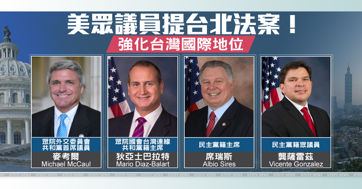 沒錯,繼美國參議院外委會9月通過《台北法案》之後,多位跨黨派眾議員,包括共和黨首席議員麥考爾、民主黨籍主席席瑞斯等人提出了眾院版本的「台北法案」。