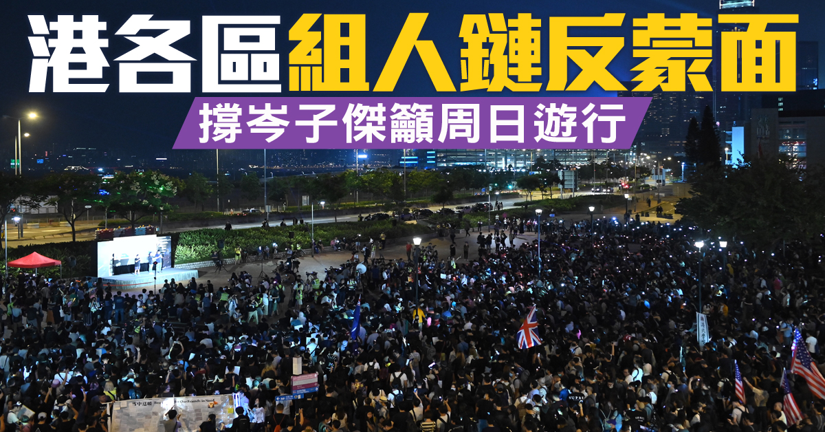 港各區組人鏈反蒙面 撐岑子傑籲周日遊行