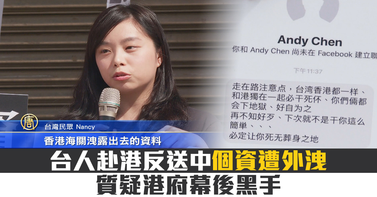 曾多次赴香港參與反送中運動,Nancy表示她的個人資料,甚至在香港的行蹤,都被公布在網站「香港解密」,不斷收到中共五毛的恐嚇訊息。
