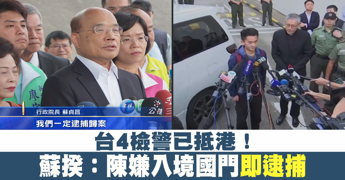 台4檢警已抵港!蘇揆:陳嫌入境國門即逮捕
