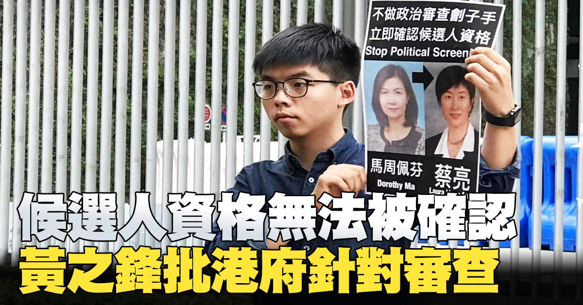 候選人資格無法被確認 黃之鋒批港府針對審查
