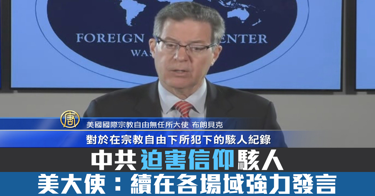 【新唐人亞太台 2019 年 10 月 26 日訊】好的,中共打壓宗教自由,持續受到國際關注。在國際宗教自由日即將到來之際,美國國際宗教自由無任所大使布朗貝克表示,對於中共殘酷的迫害宗教信仰自由,美國將會持續在各個場域強力發言,他也期盼,有一天中共能夠同意,開始直接與美國還有世界其他國家,面對迫害人權議題進行對談。