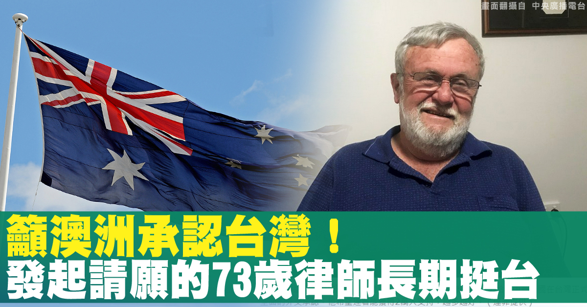 籲澳洲承認台灣! 發起請願的73歲律師長期挺台