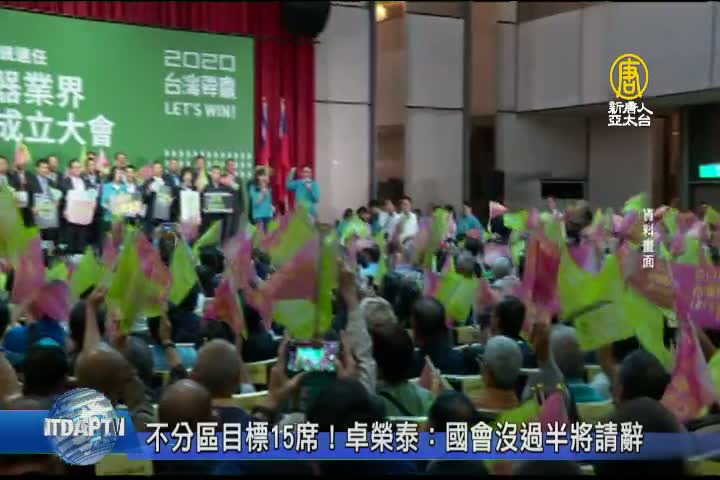 【新唐人亞太台 2019 年 10 月 30 日訊】決戰2020,大選倒數第73天,民進黨主席卓榮泰今天(30日)接受廣播專訪時表示,民進黨目標國會拿下過半席次,這樣才能有穩定的政局,預估不分區立委席次安全名單在15席。卓榮泰說,如果沒拿下國會過半,他就請辭黨主席職務。