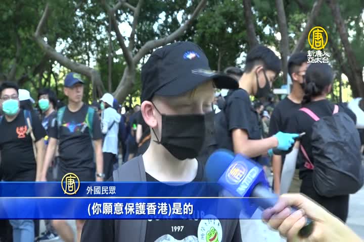 外國民眾:「很多示威者,他們不放棄,他們希望保護香港。(你願意保護香港?)是的。(您如何做?)持續抗爭。」