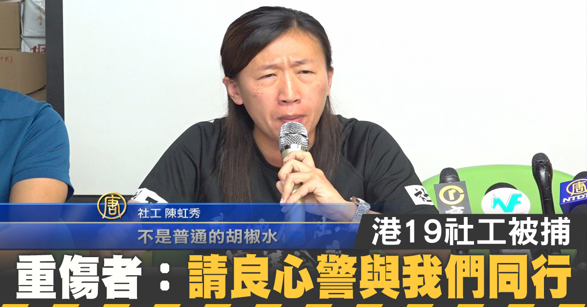 【新唐人亞太台 2019 年 11 月 02 日訊】反送中運動至今逾5月,警方暴力不斷升級,甚至毆打和抓捕救護員、社工和記者。香港社會工作者總工會披露,共有19名社工在前線被捕,一名10月31日晚上被警打爆頭的社工,否認警方不小心撞到的說法,要求有良知的警察站在市民這一邊。