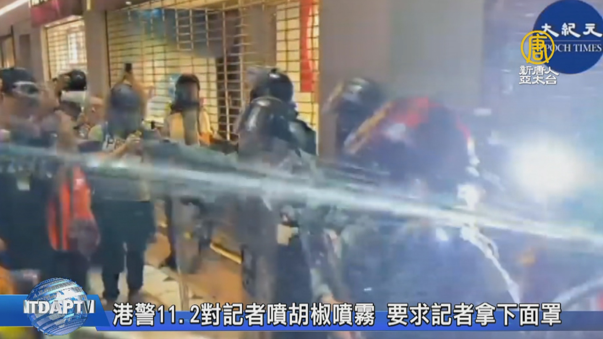 港警11.2對記者噴胡椒噴霧 要求記者拿下面罩