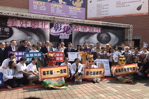 【新唐人亞太台 2019 年 11 月 03 日訊】反毒行動博物館巡迴特展今天(3日)在彰化縣立圖書館前廣場開幕,將展出到11月29日止,彰化縣長王惠美、法務部保護司長黃玉垣、彰化地方檢察署檢察長徐錫祥等人主持開幕,大家還在電音三太子帶領下跳了一段小蘋果熱場,吸引人潮參觀。