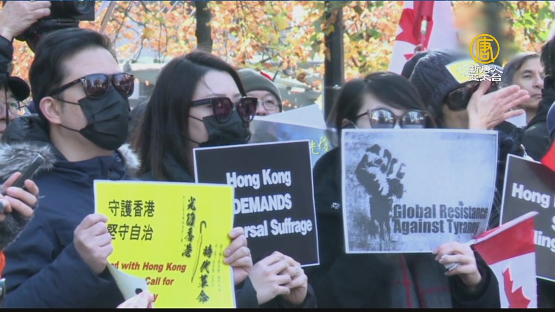 數百人聚集在加拿大多倫多市政廣場,回應港人112國際求救呼聲。